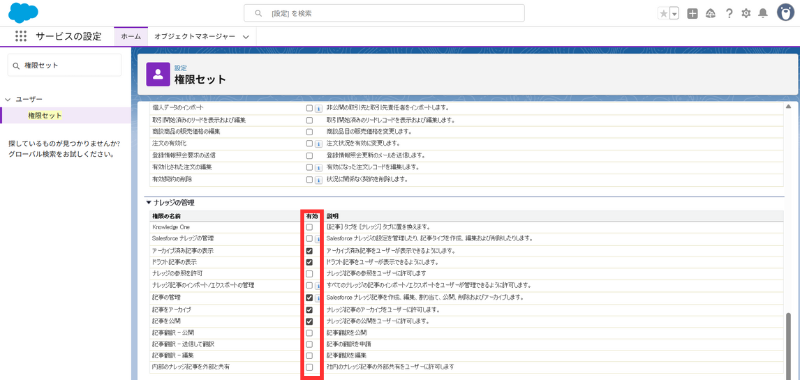 - ナレッジの管理の3項目を有効化: