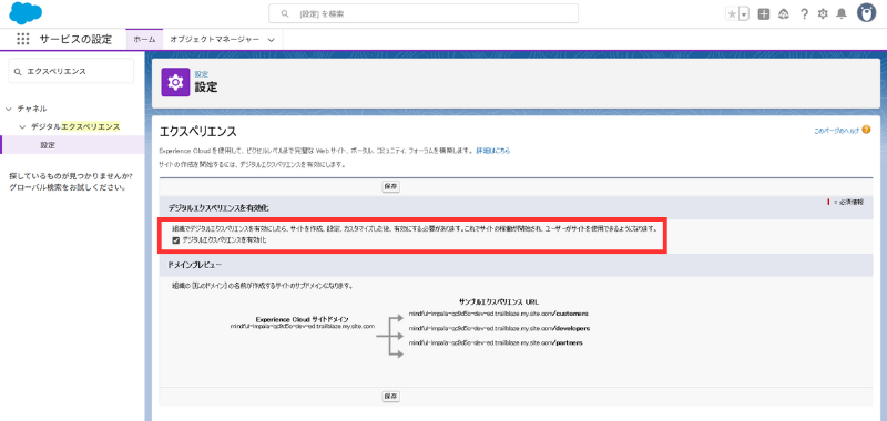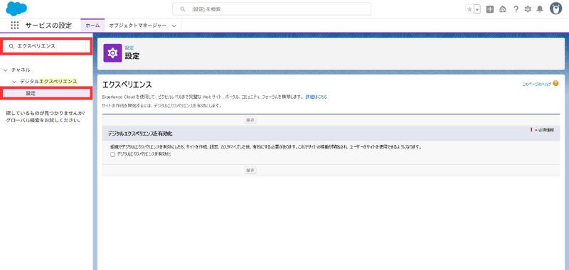 - **[デジタルエクスペリエンスを有効化]**にチェック → [保存]