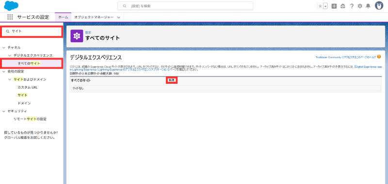 - クイック検索「エクスペリエンス」→ [デジタルエクスペリエンス > 設定]