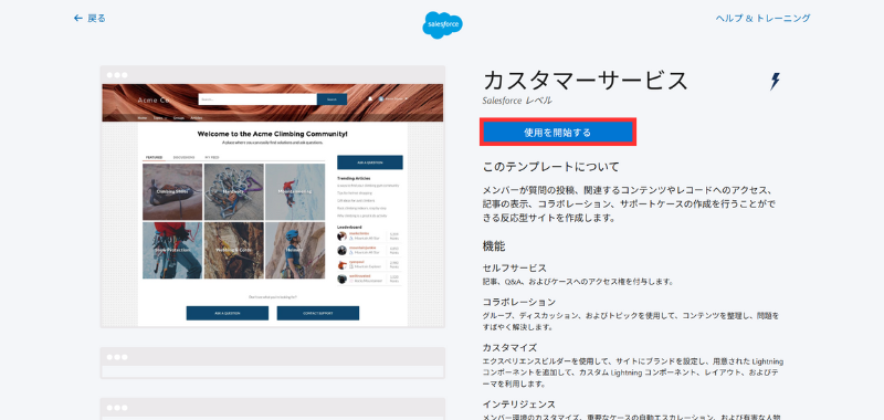 - テンプレート 「カスタマーサービス」 を選択→ [使用を開始する]