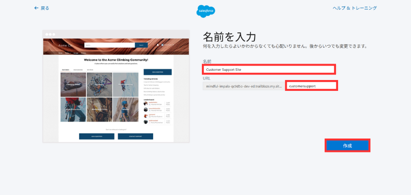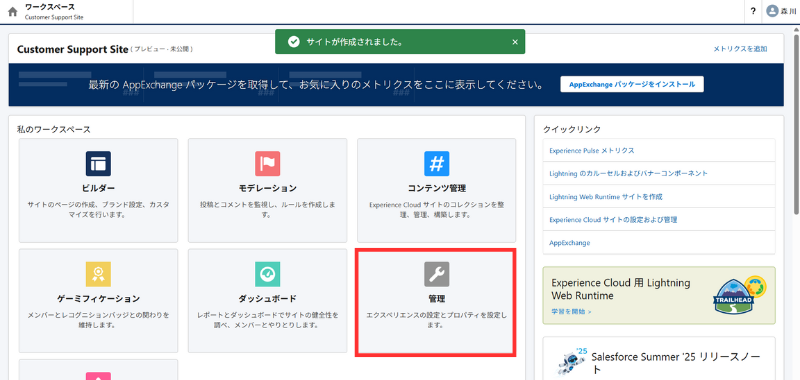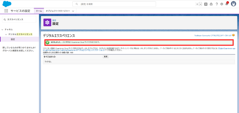 確認ポイント:「Experience Cloud サイトを作成できます」のトーストが出ればOK。