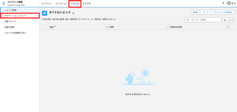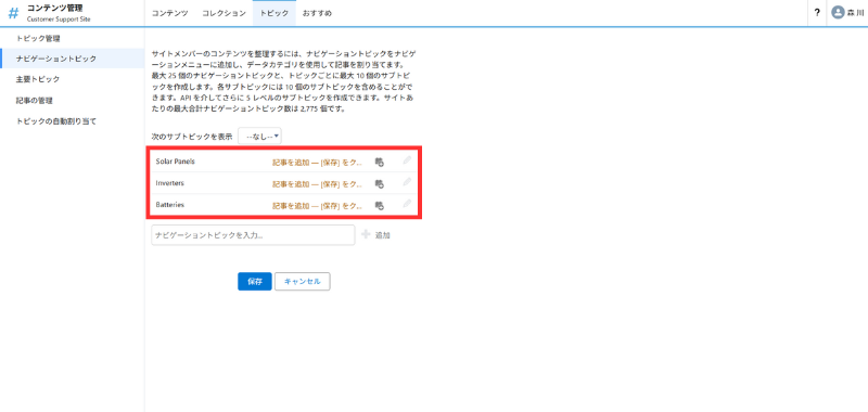 - [コンテンツ管理]>[トピック]>[ナビゲーショントピック]