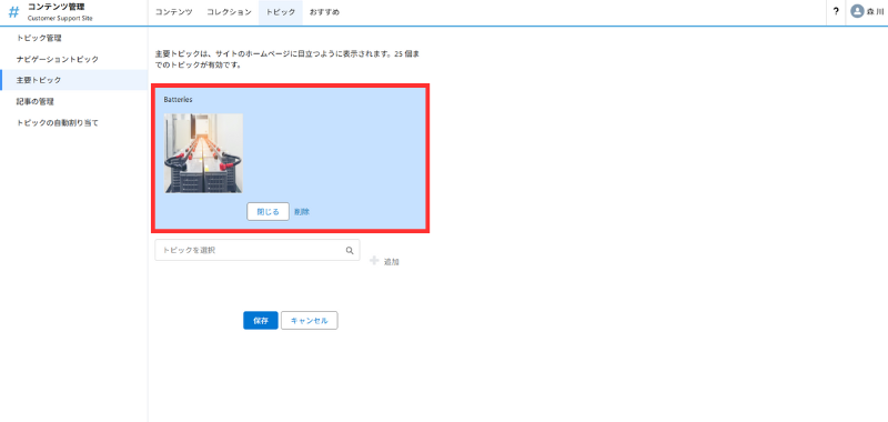 操作:コンテンツ管理 > 主要トピック
