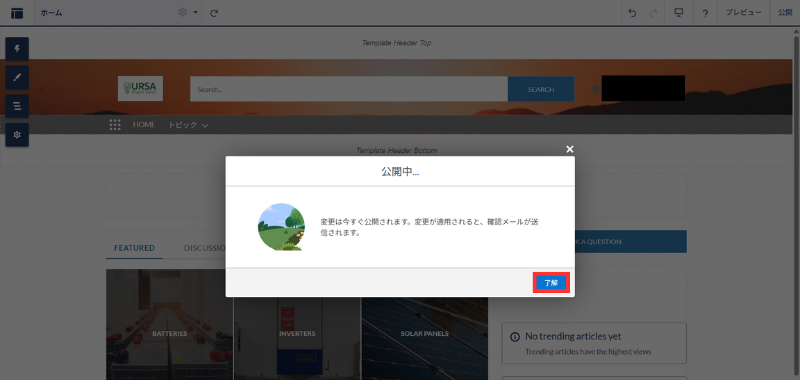 - 公開中ダイアログ。完了後 了解。