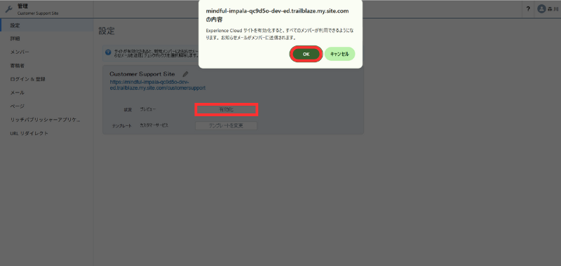 サイトの有効化(Activate)