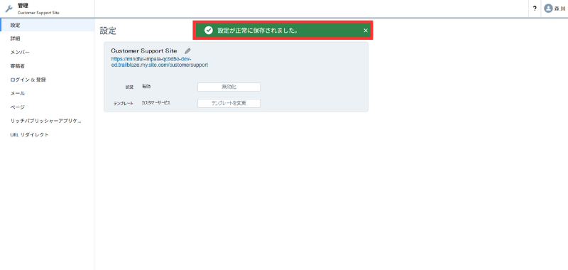 - 画面上部の 「設定が正常に保存されました」 を確認