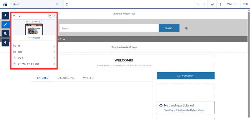 - ビルダー左の 鉛筆 → テーマ